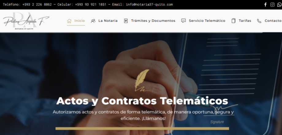 La Notaria Trigésima Séptima del cantón Quito tiene un compromiso con sus usuarios en brindarle un servicio eficiente y eficaz, acorde a las necesidades y los retos que se presentan, con el recurso humano y las herramientas tecnológicas alcanzando soluciones integrales sin sacrificar la calidez en el servicio y el trato personalizado.